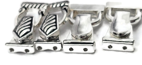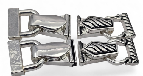 This curated pack is all bright silver-tone and includes two of each style shown. One style features a sleek, reflective modern finish, while the other has a bold diagonal striped texture with a rope-style edge. It’s a perfect fold over magnetic clasp mix for jewelry making supplies when you want a consistent, high-end look for your bracelet closure while still having a bit of decorative variety.