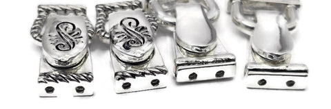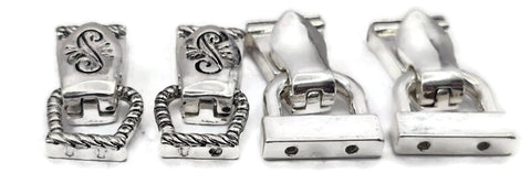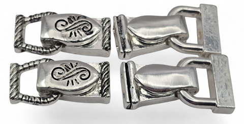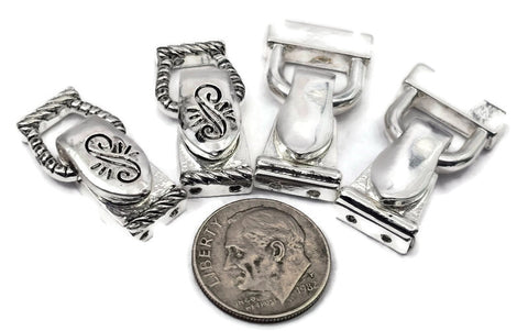 This curated pack is all bright silver-tone and includes two of each style shown. One style features an elegant scroll-top design with a rope-textured edge, while the other offers a sleek, modern reflective finish. This fold over magnetic clasp assortment is perfect for jewelry making supplies when you want a consistent, high-end metal finish for your bracelet closure while enjoying a variety of boutique textures.