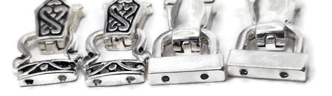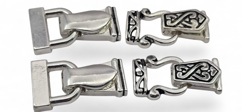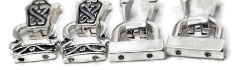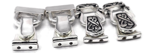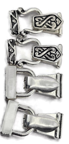 Curated assorted pack of fold-over magnetic clasps for jewelry making. You will receive the exact clasps shown in the photos in a bright silver-tone magnetic clasp mix featuring two coordinating styles—one sleek and reflective, one Celtic-inspired. This mix all has 2 holes on each end for a secure and aligned connection. Includes 4 clasps (or 8 if you choose the 8-pack).