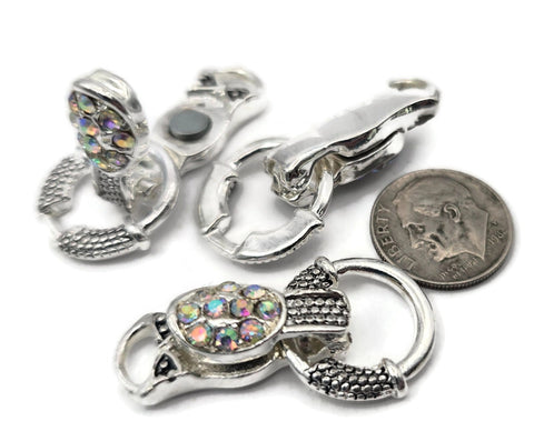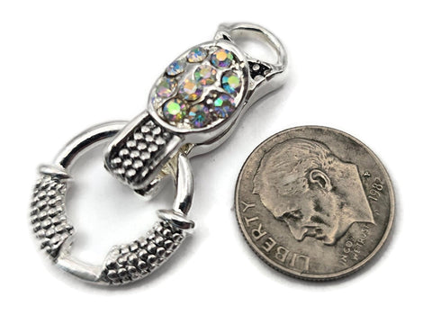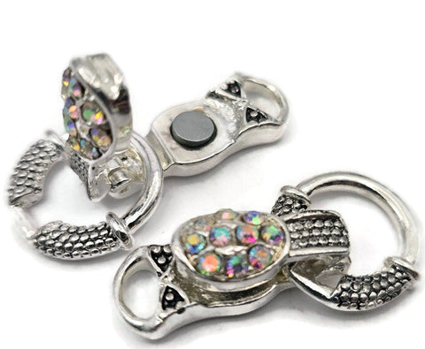*Cast in bright silver with Clear AB CZ rhinestones on the one end and a loop design for attachment as shown. 35 mm Long, 16 mm wide. With a strong magnetic closure.