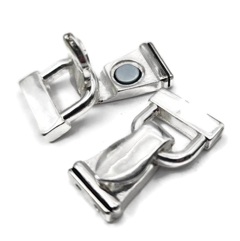 Fold Over Magnetic Clasps in Silver for Jewelry Making into Necklaces and Bracelets or Crafting 2 holes for Double Strand 7240