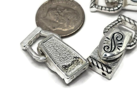 Style matters, too. The rope‑edge border frames a lid with either engraved scrollwork or a hammered texture, complementing western, boho, and classic designs. The bright silver finish coordinates with sterling‑tone chains, crystal rondelles, seed beads, and mixed‑metal palettes. Whether you’re finishing a bead‑woven cuff or a sleek double‑strand gemstone bracelet, these clasps provide a cohesive, upscale look.