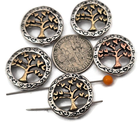 2 Hole Slider Beads (5 pc) Tree of Life Beads Sliderbeads Mixed Metal – mobile-boutique.com