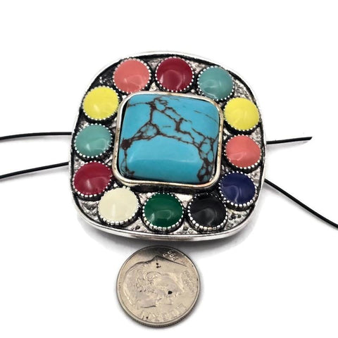 1 Very Large Focal Bead - Beautifully brightly colored enamel design in a western look in Antique Silver metal.