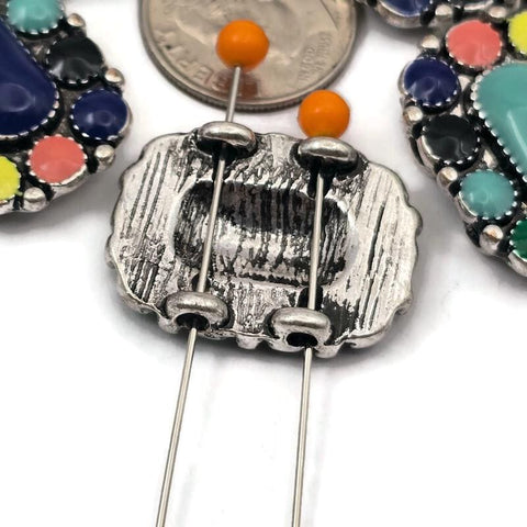Beautifully brightly colored enamel rectangle designs in a western look in Antique Silver metal.