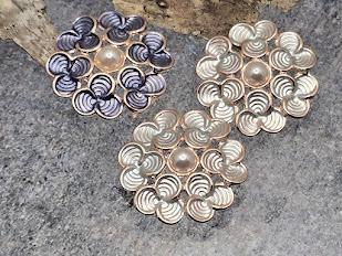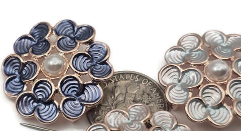 Cast in gold with a faux pearl center and blue annd cream enamel petals. These flower or floral beads make perfect focal beads for bracelets, pendants for necklaces, or even earrings and rings. So many jewelry-making possibilities, but also great for hair or purse accessories.