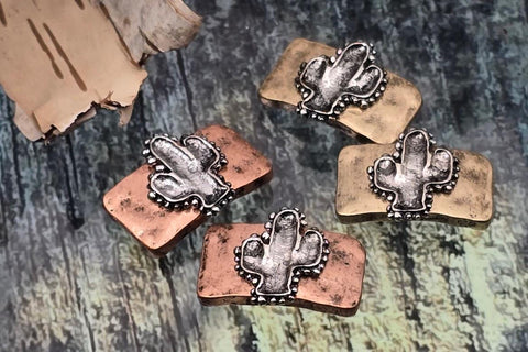 2 Hole Slider Beads (4 pc) Western Cactus Focal for Crafting, Beading, Jewelry Making into Bracelets, Necklaces, Rings or Earrings 771-F1