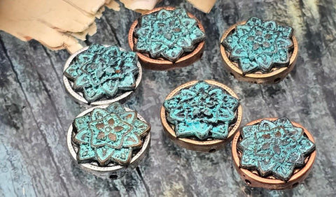These beads are perfect for collections inspired by nature, bohemian aesthetics, spiritual themes, or vintage finds. The turquoise and verdigris tones pair beautifully with earthy neutrals, deep blues, and warm metallics. Combine them with natural gemstones, leather cords, or other metal findings to build layered, textured designs.