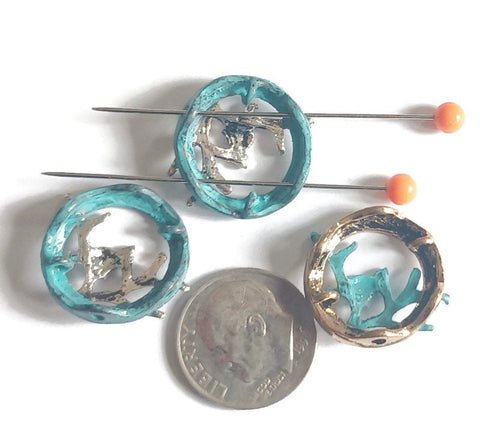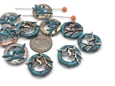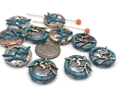 Cast in mixed metal with a branch in the center or an open circle bead.