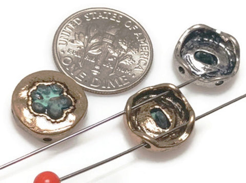 Made with a metallic finish in silver, bronze, and copper, these paw print beads offer a rustic yet elegant style that pairs beautifully with a variety of other beads and textures. The raised paw design has a charming, detailed look with a colored inlay that gives dimension and uniqueness to every bead. Measuring around the size of a US dime (as shown), they make the perfect focal beads without overwhelming your design.