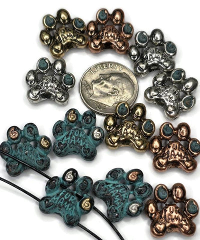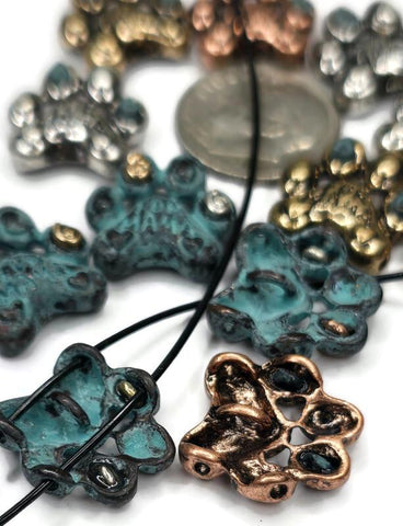 Add these mixed metal paw print beads with patina to your beading collection and design jewelry that keeps paws close to the heart—forever.